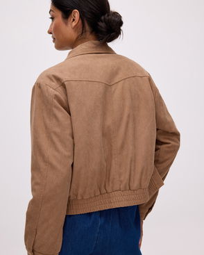 Brown & Pastel Floral Print Corduroy Collar Denim Jacket