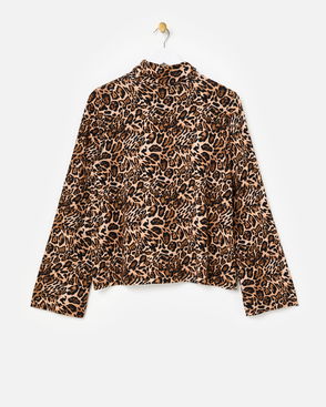 Brown Leopard Print Roll Neck Long Sleeve Top