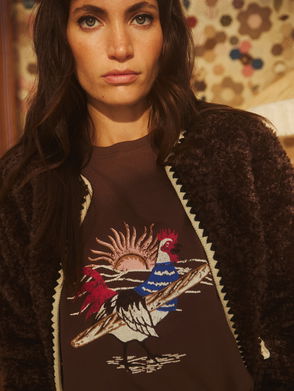 Chocolate Brown Cross Stitch Sleeve Sweatshirt