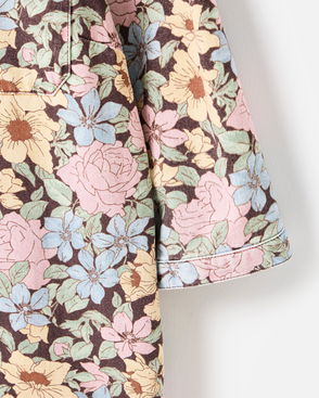 Brown & Pastel Floral Print Denim Half Zip Mini Dress