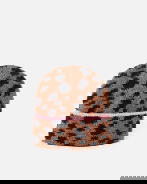 Brown & Black Spotty Animal Print Knitted Beanie Hat