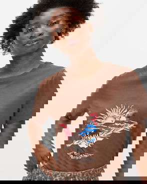 Brown & Cream Horse Print Fitted Long Sleeve Top