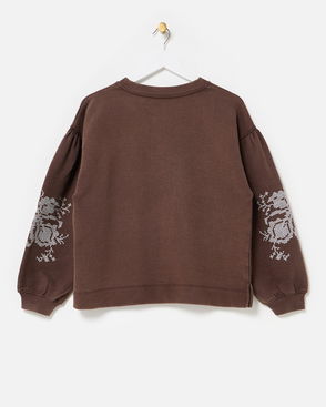 Chocolate Brown Cross Stitch Sleeve Sweatshirt