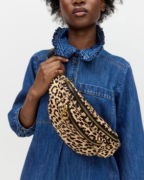 Lexi Leopard Print Textured Double Zip Belt Bag