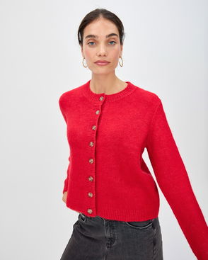 Rose Red Sparkle Crew Neck Knitted Cardigan