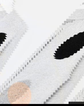 Grey Textured Spot Crew Neck Knitted Cardigan