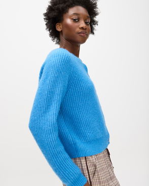 Chocolate Brown Ribbed Crew Neck Knitted Cardigan