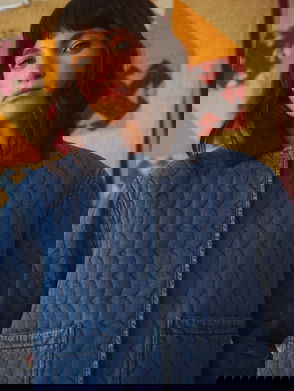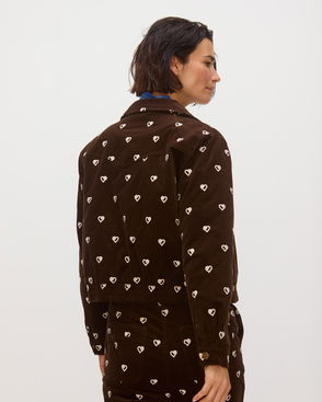 Chocolate Brown Corduroy Heart Embroidered Quilted Jacket