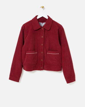 Berry Red Corduroy Embroidered Pocket Collared Jacket