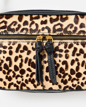 Nora Leopard Print Textured Zip Front Crossbody Bag