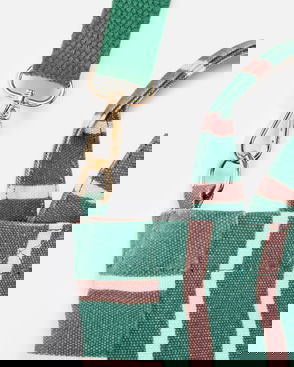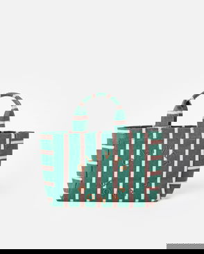 Dark Green & Pink Striped Logo Fabric Mini Tote Crossbody Bag