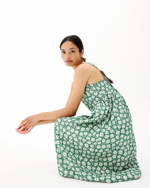 Green & White Daisy Jacquard Pleated Midi Skirt