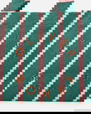Dark Green & Pink Striped Logo Fabric Tote Shopper Bag