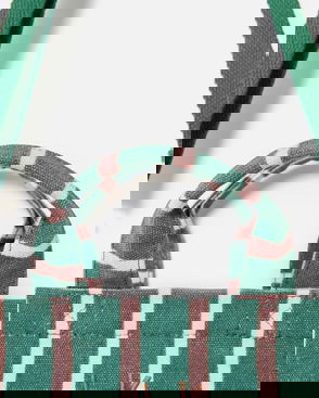Dark Green & Pink Striped Logo Fabric Mini Tote Crossbody Bag