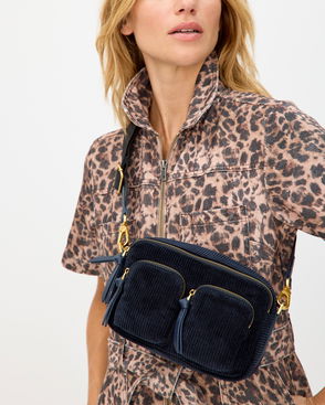 Evie Navy Blue Corduroy Double Pocket Crossbody Bag