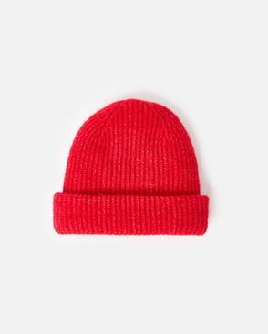 Red Ribbed Knitted Beanie Hat