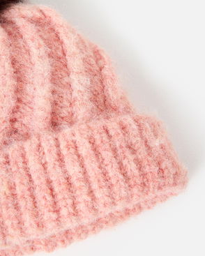 Pink Marl Ribbed Knitted Beanie Hat