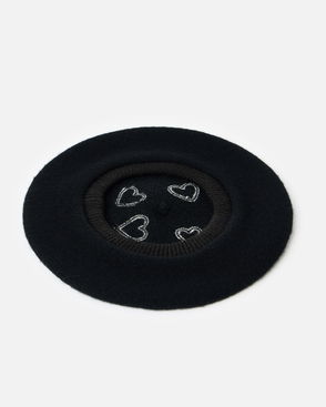 Black Heart Knitted Beret Hat
