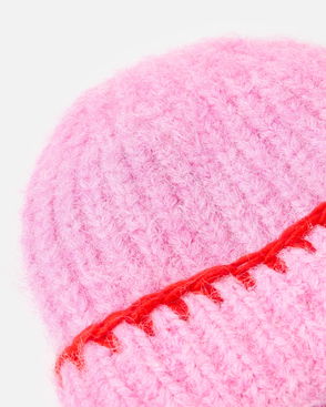 Pink & Red Blanket Stitch Knitted Beanie Hat