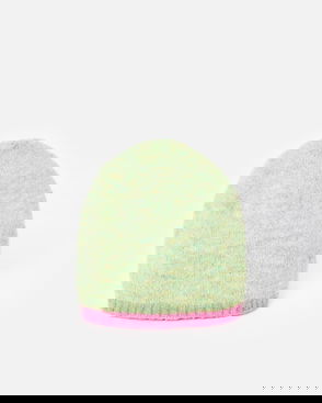 Green Marl & Pink Trim Knitted Beanie Hat