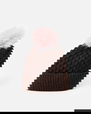 Pink Twisted Cable Knit Bobble Hat
