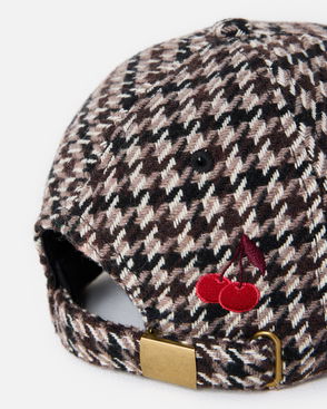 Brown Houndstooth Wool Blend Cherry Motif Cap Hat