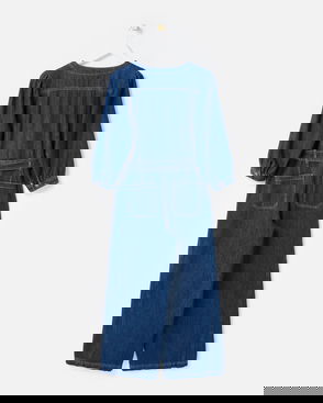 Dark Blue Denim V-Neck Tie Waist Jumpsuit