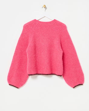 Pink Puff Sleeve Sparkle Knitted Cardigan