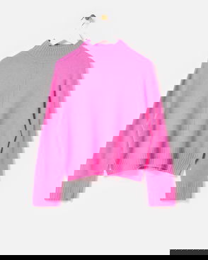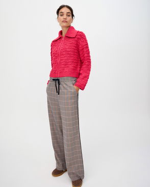 Hot Pink Loop Zip Up Collared Knitted Bomber Jacket