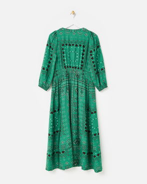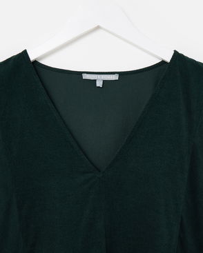 Dark Green Corduroy Embroidered Sleeve V-Neck Midi Dress