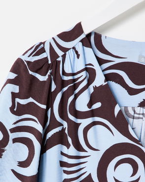 Chocolate Brown & Blue Horse Print V-Neck Midi Dress