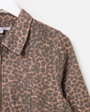 Brown Animal Print Denim Zip Front Collared Midi Dress