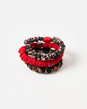 Cecily Animal Print & Red Heart Mini Scrunchies Set Of Three
