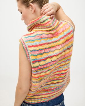 Multicoloured Striped Roll Neck Knitted Tank Top