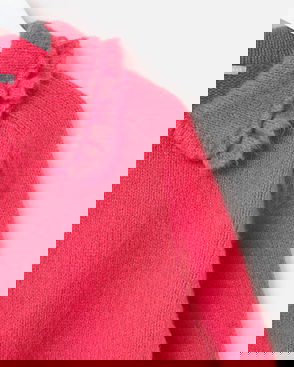 Pink & Burgundy Trim V-Neck Knitted Cardigan