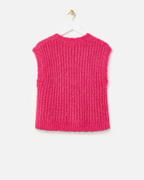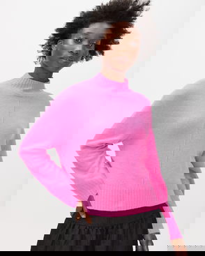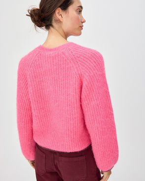 Pink & Burgundy Trim V-Neck Knitted Cardigan