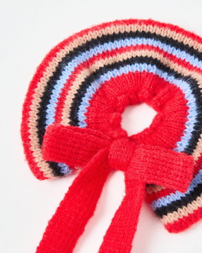 Red & Peach Striped Fluffy Knitted Skinny Scarf