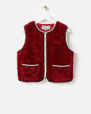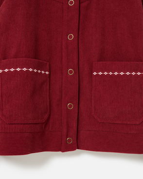 Berry Red Corduroy Embroidered Pocket Collared Jacket