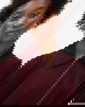 Berry Red Corduroy Embroidered Sleeve V-Neck Mini Dress
