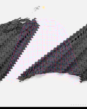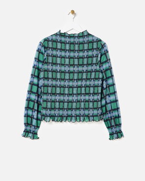 Blue & Green Checked Shirred Mesh Top