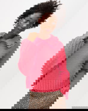 Hot Pink Frill Collar Knitted Jumper