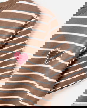 Brown & White Striped Heart Embroidered T-Shirt