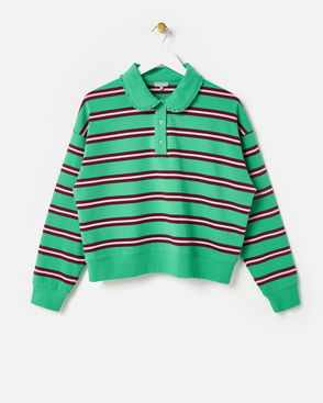 Green & Burgundy Striped Long Sleeve Rugby Top