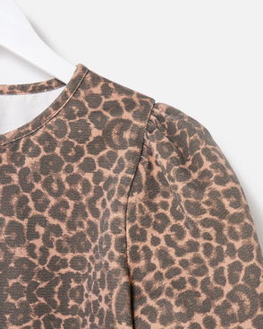 Brown Animal Print Denim Puff Sleeve Top