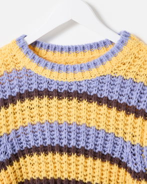Yellow & Lilac Striped Lofty Short Sleeve Jumper