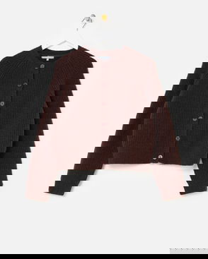 Chocolate Brown Ribbed Crew Neck Knitted Cardigan