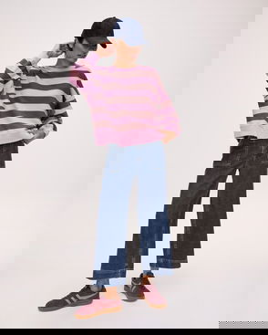 Pink & Chocolate Brown Striped Washed Sweatshirt