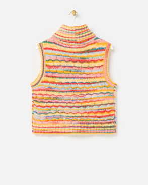 Multicoloured Striped Roll Neck Knitted Tank Top