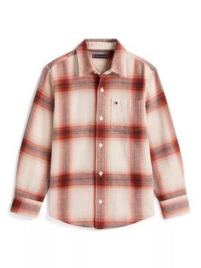 Kids' Waffle Texture Check Shirt, Voyager Orange