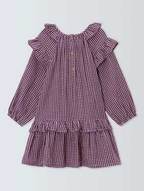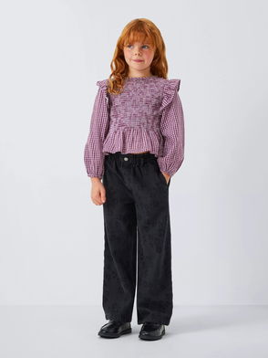 Kids' Gingham Peplum Hem Top, Orange, Black
